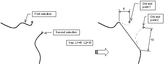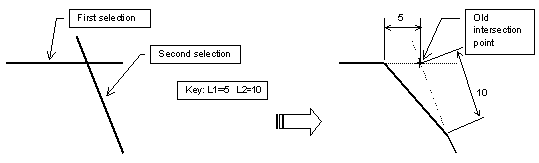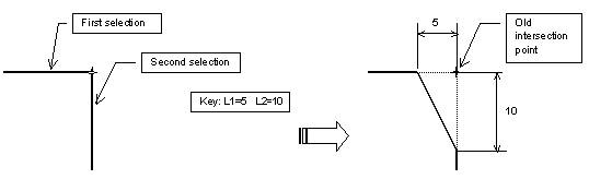 This task shows how to create a chamfer between two lines trimming either all, the first or none of the elements, and more precisely using one of the following chamfer definitions: |