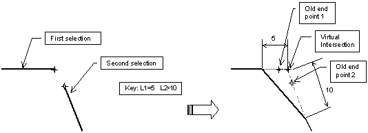 Provided the Dimensional Constraint option command is active, the constraints will be created between what we call in the scenarios below the old intersection point and new end points of the lines. |