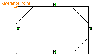 Dimensioning the Edge Intersection PointYou can create several chamfers just by multi-selecting for example, the rectangle endpoints and entering the definition parameters in order to define these chamfers (Sketch tools toolbar). Four chamfers are created at the same time with the same parameter values. Using the Length1/Length2 Option