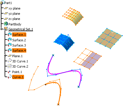 In this case only the two trimmed surfaces and trimmed curve are selected.