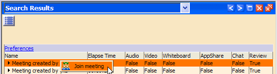 In the ENOVIA Instant meeting widow, select the