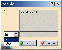 To reorder parameters, right-click the parameter to be reordered, and select Reorder.... The Reorder dialog box is displayed. In the specification tree, click a parameter below which the parameter to be reordered will be located. Click OK when done.
