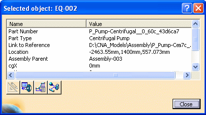and XYZ coordinates of connectors. The type of information shown depends on the object and the product you are using.