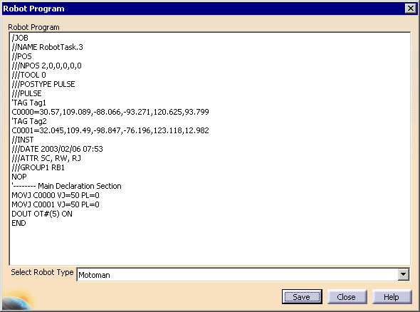 for spot weld activities. Unparsed robot language commands can also be added to the