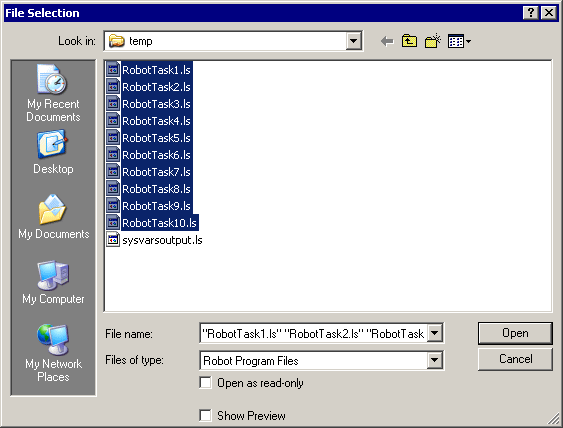Select the robot task of R2000iA-210F.1 in the PPR tree.