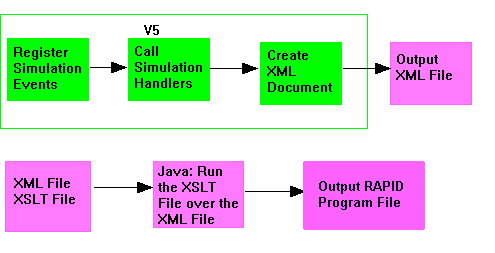 Downloading generates a RAPID file (RAPID is the language of ABB S4/S4C/S4Cplus Robot translators) from the PPR tree. The following steps take place: