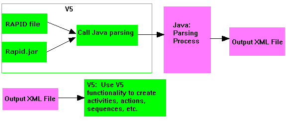 This table displays the mapping between RAPID commands, XML elements, and V5 functionality: