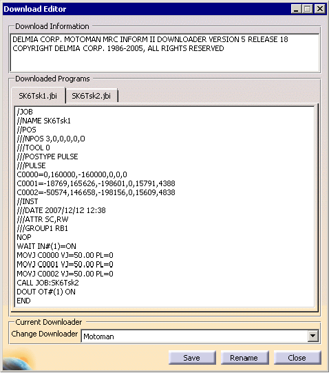 Downloading generates a SLIM (language used by Nachi AW/AX robot translators)