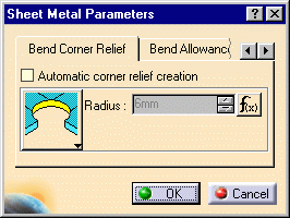 | By default, no corner relief is created when a bend is created. Check the Automatic corner relief creation option to activate this creation every time a bend is created. | |||||