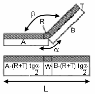 W = V + 2 * (R + T) * tan ( min(p/2,a)
