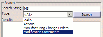 to Modification Statement, Manufacturing Change Order or Action to display the Select Modification Statement