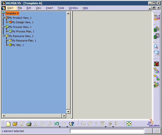 All of the capabilities of PPR Manufacturing Hub Navigator can be used with templates in the same manner as projects, including template structure navigation and using the PPR Editor commands to edit the template. |