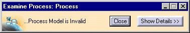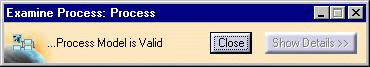 The model checker function will begin validating the process model of selected activity against the fundamental V5 modeling requirements and rules. If there are no errors found after analyzing the selected process model, the message "Process Model is Valid" will appear in the dialog box:
