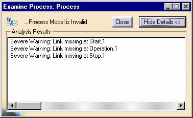 Process and Resource Definition features a tool for checking the validity of a process model. A number of prerequisite conditions can be used to determine whether or not a model is valid. This tool analyzes the model to ensure that a number of modeling requirements are satisfied, and provides feedback to the user to indicate any requirements that are not met. The model checker can be used to guard against unexpected behaviors when running process verification and process simulation. |