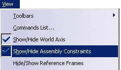 | If you would prefer not see assembly constraint markers, check the box beside View > Show/Hide Assembly Constraints. | |||||