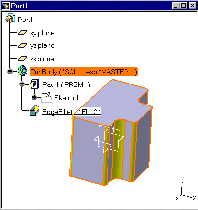 This task shows you how a fillet operation performed on