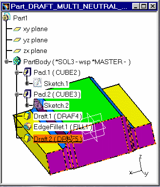DRAFT_MULTI_NEUTRAL.model in CATIA V5. The purple draft is created
