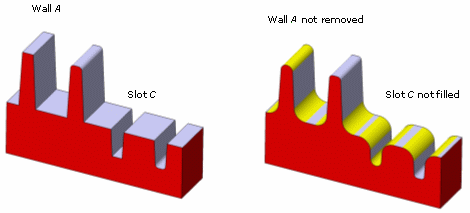 filled by the automatic filleting operation. Similarly, a slot that is not