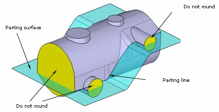 - The Round radius and Parting element