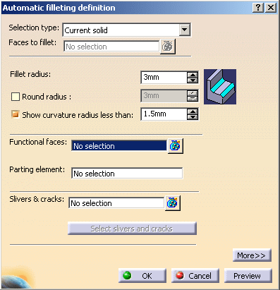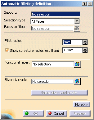 The Automatic filleting definition dialog box
