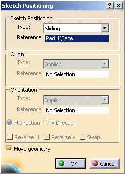 directions. The new sketch position is previewed in the geometry area.