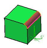 Using the command described in this task, you can draft faces after filleting edges, as illustrated in the example below: