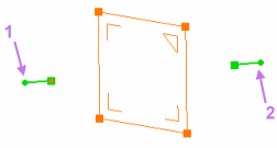 and the two squares displayed in green on the 3D representation to