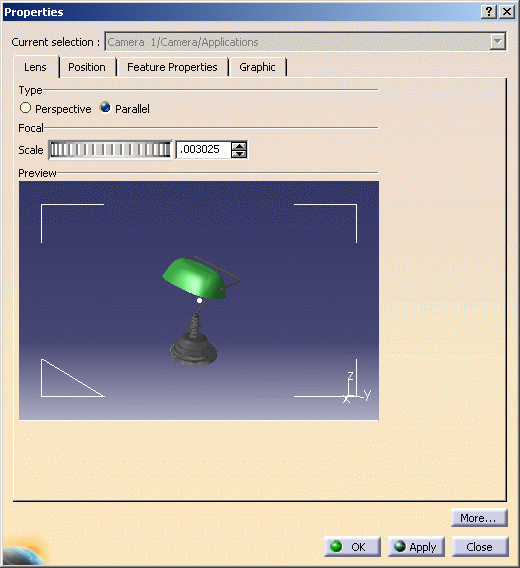 Lens tab, select the lens type: Perspective or