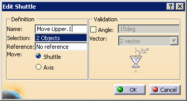 selected object is validated against the existing shuttle and the other