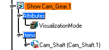 The Synchronize 3D Model command (which is accessible either from Edit > Selected_simulation_activity object > Synchronize 3D Model or from a context menu) enables you to make the geometry view reflect whatever the selected activity does. For instance, if the Show Cam Gear.1 object was altered so that the Cam Gear.1 object is now hidden, using the Synchronize 3D Model command makes the Cam Gear.1 object disappear from the geometry without running a simulation. |