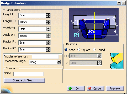| The Bridge Definition dialog box opens, providing default values.
