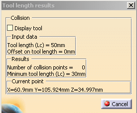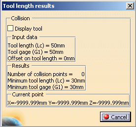 This task explains how to check a tool path to identify all the points where the tool holder collides with the part. | ||||||