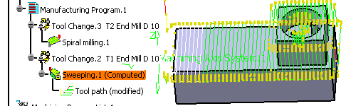Click Area Modification .The tool path and the tool path area editor are displayed.