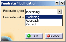 - Apply a new feedrate as a value (or a ratio of the machining feedrate
