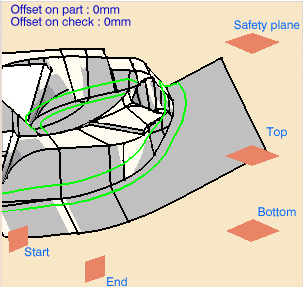 - Outside stops the tool outside the limit line,