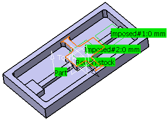 to machine on a fine material thickness This warning applies not only to rework but also to the cases where the rough stock matches the configuration above. A side machining can be guaranteed only if the thickness of the material to remove on any point is higher than the Remaining thickness for sides. |