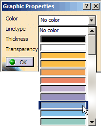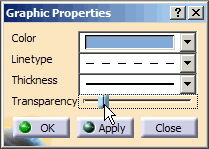 You can modify the Graphic Properties of objects in the viewer. This feature allows you to change the appearance of any part of the product in the Viewer. | |||||||