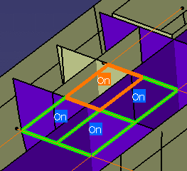 compartment for generation. As you move the cursor over the compartment, its highlight changes to orange as shown in the previous diagram. When you toggle a compartment to Off, it is highlighted in red. Now you can generate the selected compartments. See Generating Compartments from a Wall System. |