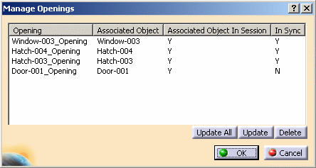 A list of all objects containing openings on the selected wall displays