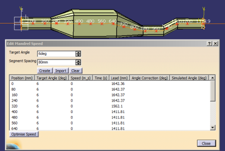 Editing the mandrel speed splits the braid axially into multiple segments, with a constant speed over each segment.