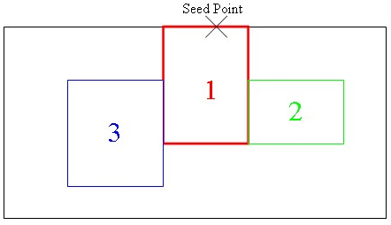 Seed PointThe seed point is defined in same way as for the standard fiber simulation. However, Composites Fiber Modeling supports seed points located on the boundary of the ply. This reflects the normal practice where the application of the ply often begins along the edge of the region to be covered. In general, the material is unsheared at the seed point and shearing increases away from that point. The amount of shear in a ply made of a particular material increases with distance from the ply, and the degree of Gaussian curvature of the surface (this is a reflection of the double-curved nature of the surface, when applicable). Therefore, to minimize shear, the seed point should be located: