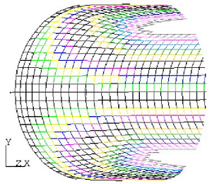 In order to calculate the flat and draped patterns of these materials, a purely geometrical approach cannot identify the important load paths in the fabric as it is forced over a doubly-curved surface and instead a finite-element based flattening (FEFlatten) solution is required. The finite element flattening approach: