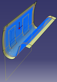 When using the enhanced producibility panel in CATIA V5R19 onwards, users can access specialized display modes relevant to the fiber simulation. These give additional insight into the deformation of the ply over and above the degree of pure shear visualised in the standard Shearing Angle display mode. Composites Fiber Modeling currently supports display of the Steering Radius (not FEFlatten), and Axial Strain (only FEFlatten solver). Steering Radius (not FEFlatten)The steering radius is the radius of curvature of the fibers in the plane of the surface. This information is particularly useful for investigating the viability of tape laying, where the forming limits of tape are usually characterized by the minimum manufacturable radius of curvature. The steering radius is also an additional measure of the degree of deformation in fabrics and can complement the standard shearing angle display. Axial Strain (only FEFlatten)The FEFlatten solver admits the possibility of axial strain along the nominal warp and weft fibers. It is only valid for the FEFlatten solver as the value would be zero for other solvers. Maximum SlopeThickness Update provides a powerful capability to offset the simulation mesh from the ply definition surface. The result is a very accurate flat patterns of plies offset from the mold surface (far better than offsetting by a constant thickness). However, for complex layups, there are situations where the resultant updated surface becomes uneven. As an example, consider the case of a two plies that are separated by a small gap (This may be intended by the designer to promote resin flow). Display Flat PatternComposites Fiber Modeling computes the flat pattern instantaneously as an intrinsic feature of its simulation, thus ensuring: