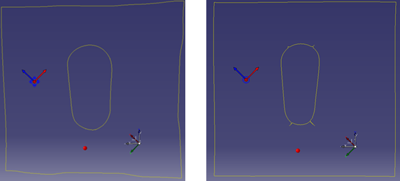![]() The example below has an interior contour. Without a smooth region, draping occurs over the entire surface causing strain to be distributed in places where it is undesirable. With a smooth region curve: