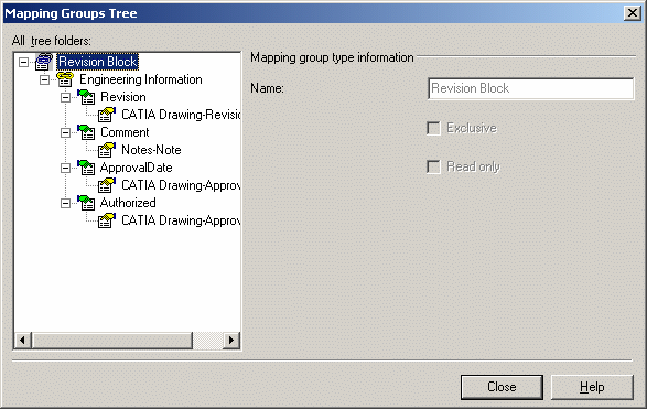 The Revision Block Mapping Groups tree dialog box appears: