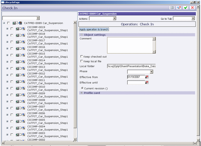What happens next?At any time it is possible to reopen the document in your CATIA session. If you need to modify it, the part must be checked out. Otherwise, the part can be copied in your session in read-only mode. |