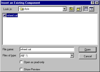 right mouse button to select the product under which the Acis part is to