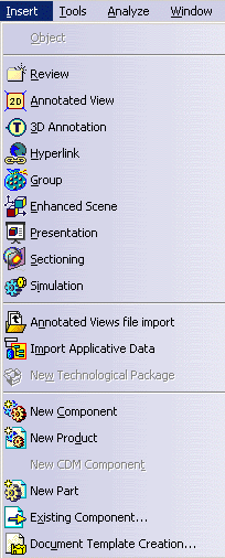 When you insert a CATProduct containing applicative data, you will have the possibility of importing its applicative data. See Importing Applicative Data from an Inserted Component. | |