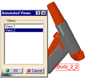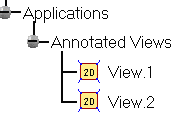 exactly the same viewpoint and if they are in the same context. Note: When multiple Annotated Views are simultaneously displayed in the same window, hitting the exit icon in the DMU 2D Marker toolbar exits the currently active view and those annotations associated to it will no longer be visible, whereas the annotations associated to the other Annotated Views sharing the same viewpoint will still be visible. |