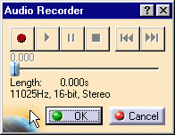 The Audio attributes dialog box and Audio Recorder dialog boxes appear: